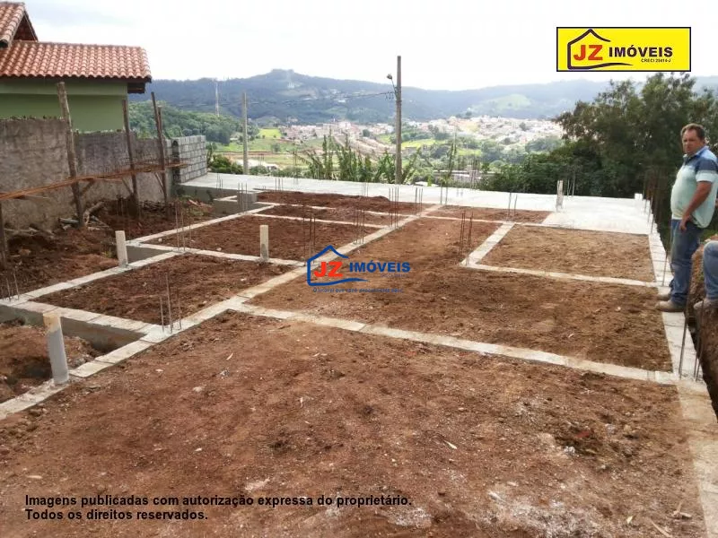 Ref: 1013-02/31 - Excelente terreno com linda vista panorâmica e totalmente beneficiado com terraplenagem, arrimo, estrutura de alicerce pronta, projeto aprovado para 120m² de área construída, sobrado, 3 vagas de garagem, documentação com escritura registrada, padrão energia e cavalete de água ligado, lindo local, único lote remanescente nesta rua sem saída, loca alto e reservado., estuda-se um automóvel popular como parte de pagamento.