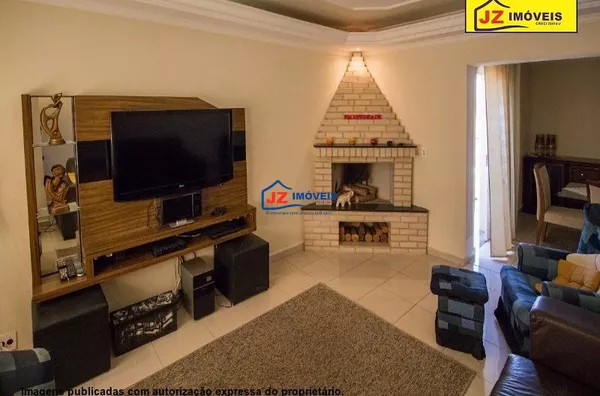Ref: 1256/22 - Linda casa com 4 dormitórios, todos com ar condicionado, dormitórios tendo 1 suite e 2 banheiros social, 3 salas (estar com lareira e sanca de gesso, jantar, tv com sanca) lavabo, cozinha planejada com despensa, lavanderia, deposito, salão de festa com banheiro, churrasqueira, piscina, quintal, garagem para 5 carros sendo cobertas, sistema de segurança, acabamento de porcelanato e granito, com excelente localização em rua sem saída.