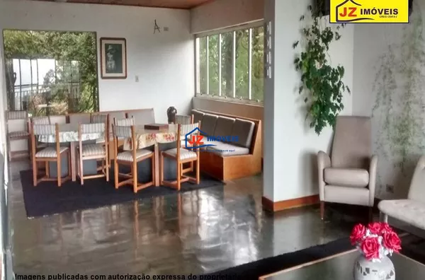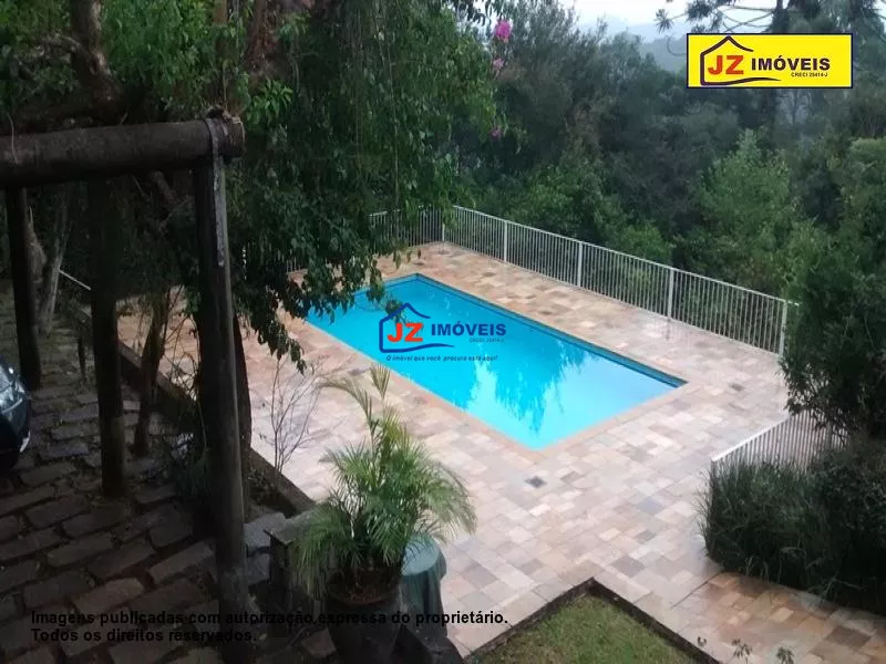Ref: 1262/22 - Excelente chácara em ótima localidade em residencial de chácaras, próximo á escolas, vias de transporte publico e padaria, com duas casas, casas sede e casa de caseiro, casa sede construída com 2 pavimentos, 1° pavimento com 5 dormitórios sendo 1 suite, quarto de empregadas com banheiro, sala de estar, sala de jantar, cozinha e 3 banheiros sociais, 2° pavimento salão de jogos, salão de festas, sala intima com lareira, bar, sala de carteado, área toda avarandada com vista para área de preservação, área de lazer externa com piscina, redário, pomar e horta, casa de caseiro com 2 dormitórios, sala, cozinha e banheiro.