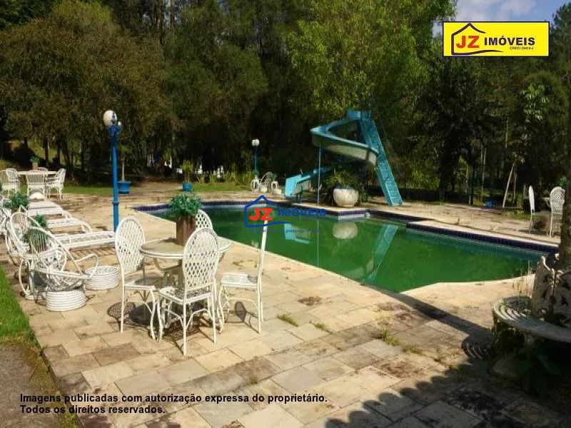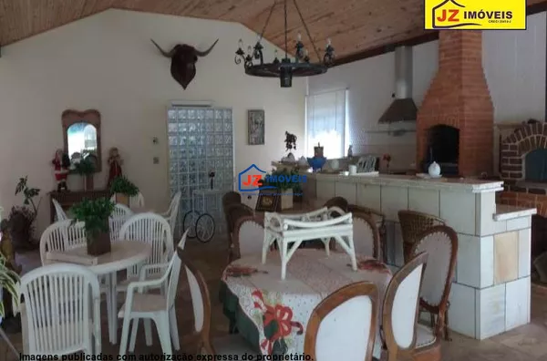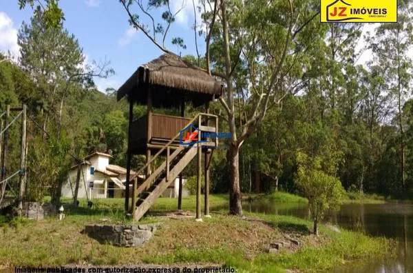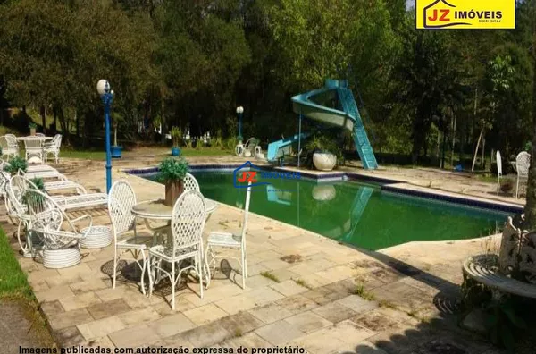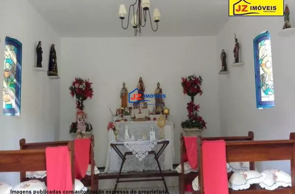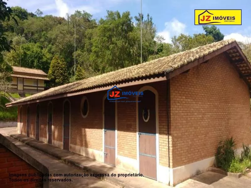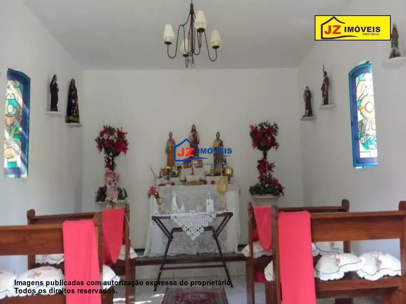 Ref. 1324-25/26 Sitio em excelente localização, casa sede com quarto amplo e varanda, banheiro amplo com banheira, ofurô e lareira. Dois closets mais uma sala para escritório e mais uma suíte c closet. Lavabo, sala de estar mais tv, sala de jantar e cozinha. Lavanderia montada, garagem coberta para 2 carros. Casa principal com quatro quartos sendo duas suítes tudo com armário embutido mais banheiro e sala de jantar e estar, lavanderia, varanda e garagem embaixo para 2 carros. Heliponto, oficina, horta, pomar, salão de jogos, churrasqueira, sauna, ducha circular e piscina. Uma capela com 2 salas e tudo decorado.