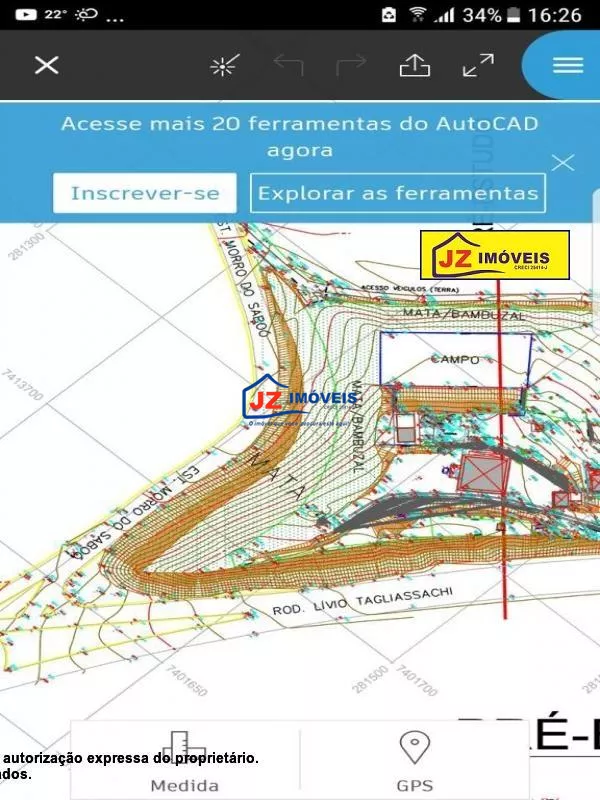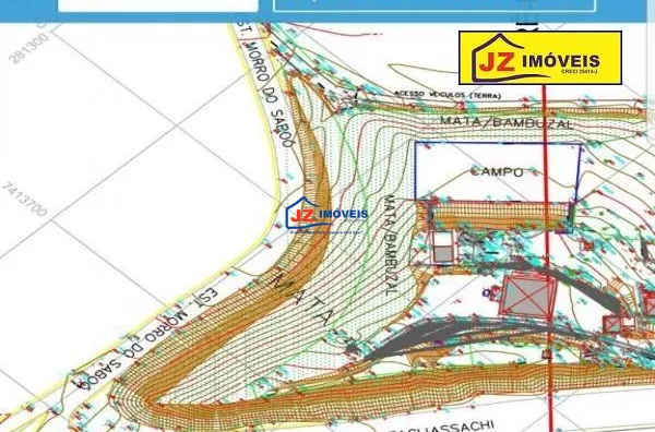 Ref: 1378-44/45 Terreno de 18.000m², com terraplanagem realizada, fazendo frente para duas estradas, com nascente de água e 10.000 metros quadrados de área aproveitável. Obs. Documentação pelo INCRA, mas o proprietário se compromete a mudar.