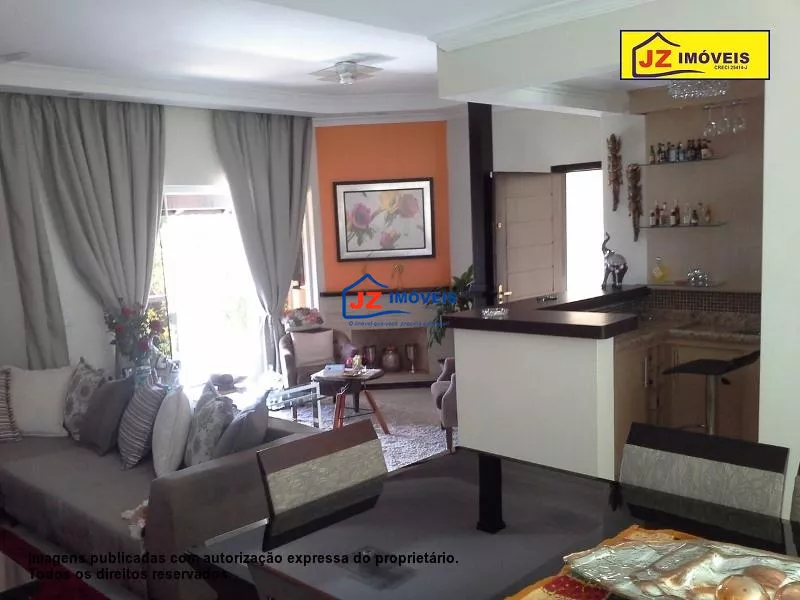 Ref: 1379/10 - Linda casa com fino acabamento, contendo uma ótima área construída com 4 dormitórios, sendo 3 internos e 1 suíte com ducha hidro italiana a gás. Armários planejados, dispensa, quarto interno para hóspedes com vista para o jardim de inverno e 1 externo com suíte para hospedes. Sala ampla com 3 ambientes: sala jantar, estar e tv. Barzinho, lavabo, linda vista para a Estrada do Vinho, escritório, área gourmet com armários planejados, churrasqueira, instalação para tv e circuito multimídia, jardim, cozinha com armários, quintal todo com piso, entrada de serviço, garagem coberta para 4 carros, segurança e sistema de monitoramento completo com alarme e cerca elétrica.