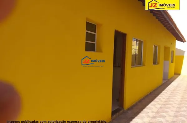 REF.1539-45/07. Linda casa térrea, ampla e iluminada, com corredor lateral, nova, localizada na praia de Mongaguá, com 02 dormitórios sendo1 suíte, sala e cozinha integradas, lavanderia, garagem com espaço para 2 veículos