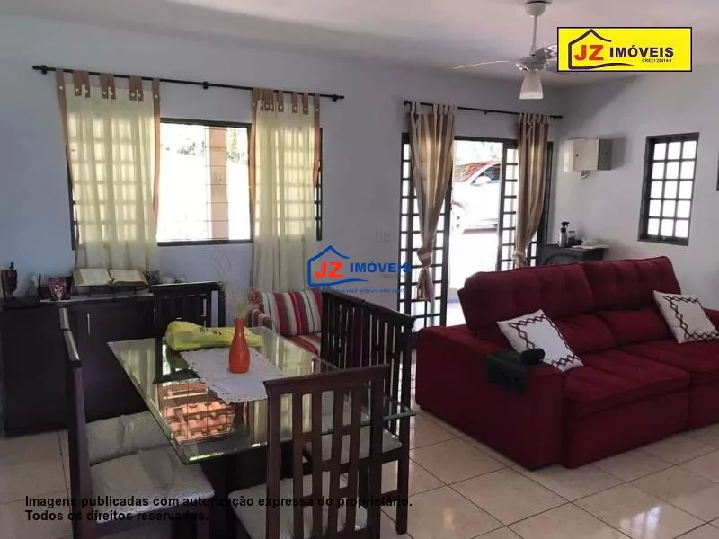REF: 1842/53 - Casa em espaçosa chácara de 6000m com 3 dormitórios sendo 1 suíte, sala 2 ambientes, cozinha, 2 vagas de garagem coberta. Área gourmet com churrasqueira, fogão a lenha, banheiro social, área de confraternização, piscina de vinil e poço artesiano.