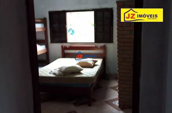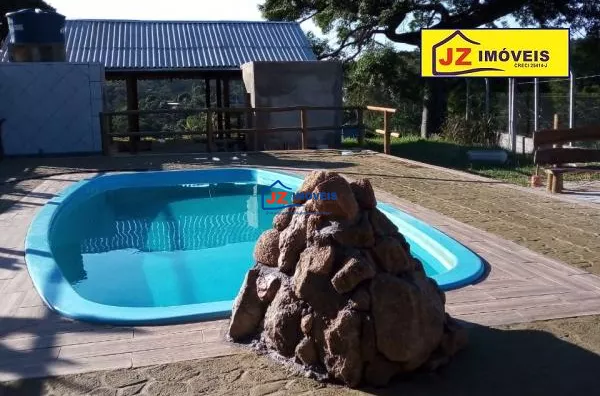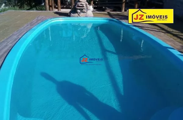 REF: 1860/50 - Casa com 2 dormitórios, espaçosa sala, banheiro, cozinha com saída para área de serviço com fogão a lenha, churrasqueira e pia cobertos. Salão aberto e grande piscina na área externa. Terreno de 2400m², próximo de transporte público e mercado.