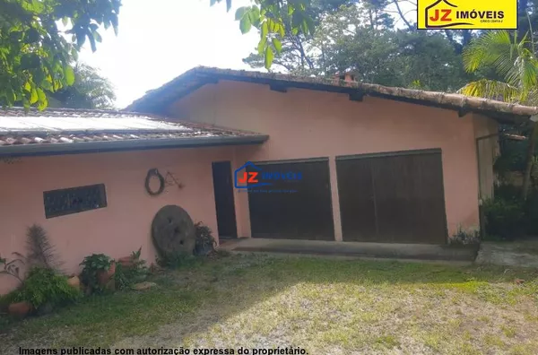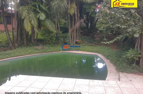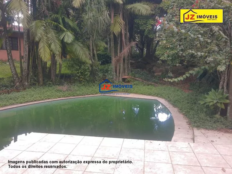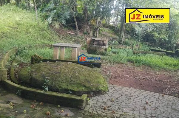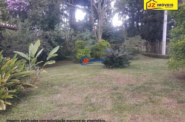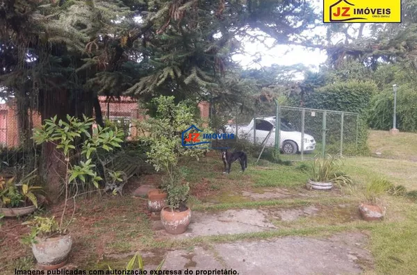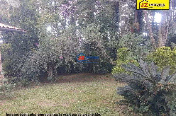 REF- 1905- Belíssimo terreno de 4.750 m² com casa principal com 4 dormitórios, 3 banheiros sendo uma suíte, com uma casa para caseiro, lenheiro aberto e um depósito fechado ao lado da casa principal, canil e mais uma dispensa, piscina e churrasqueira, além de árvores frutíferas como jabuticaba, lichia e banana.