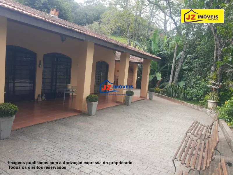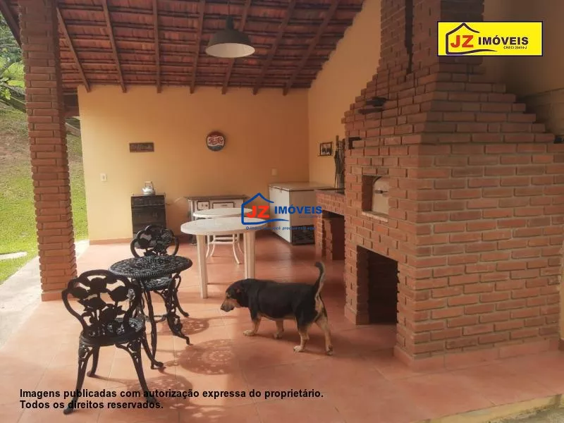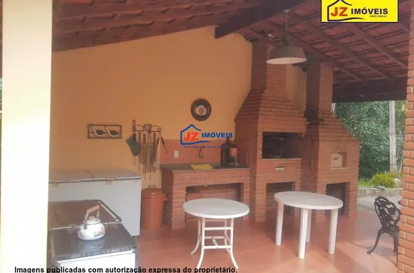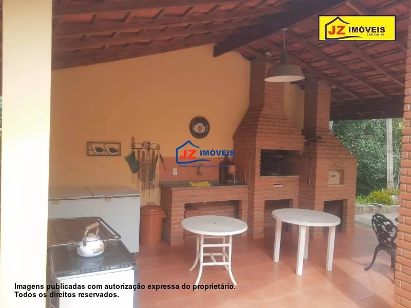 REF-1918- Casa sede de alvenaria, rústica com ampla varanda ,ampla sala de jantar e living; salão de tv e jogos , lavabo, cozinha, 4 dormitórios com 4 banheiros privativos; e pequena despensa para guardados, uma edícula de alvenaria com dois quartos e banheiros privativos. Caramanchão com churrasqueira completa, forno de pizza, pia, No fundo, pequena casa pré fabricada que pode servir para hóspedes ou empregado, a casa sede está decorada com móveis rústicos, finos e decorativos e possui internet por fibra ótica. VENHA CONFERIR!!!!