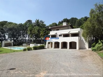 Ref: 221-02- Bela propriedade, sendo 5 suítes, sala 6 ambientes, copa, cozinha, churrasqueira, piscina. Casa de caseiro, casa de hóspedes.Vaga para 4 auto. A 3 km do Centro.