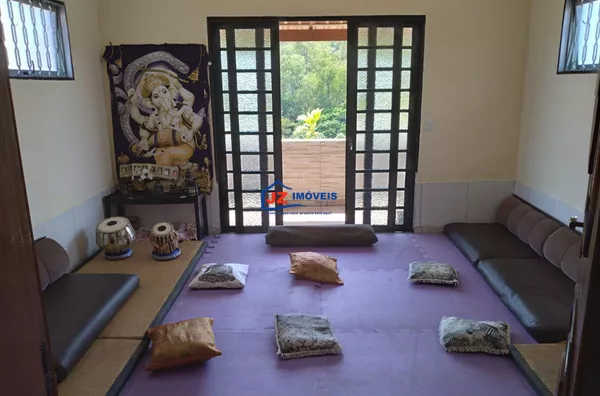 A área de lazer conta ainda com um quiosque acolhedor e uma piscina, perfeita para os dias de sol. A chácara possui 2 vagas de garagem cobertas e portaria fechada, garantindo segurança e privacidade.
