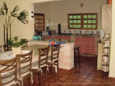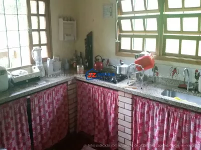 Ref; 657/04 - Linda chácara com 4 dormitórios sendo 2 suítes, sala 3 ambientes, cozinha, lareira, varanda, casa de hospedes com 2 dormitórios, sala, cozinha e banheiro, casa de caseiro, churrasqueira, fogão de lenha, forno de pizza, piscina em alvenaria, spa e cascata. Canil, galinheiro, horta e pomar produzindo. Toda murada com cerca viva, gramada, calçada com pedras.1 0 minutos da Rodovia Castelo Branco, km 58. Estuda permuta com imóvel no litoral. Documentação Escritura Registrada.