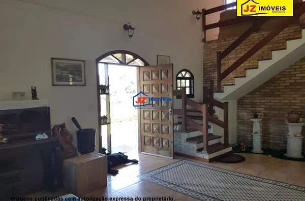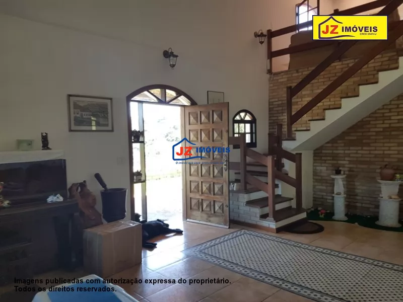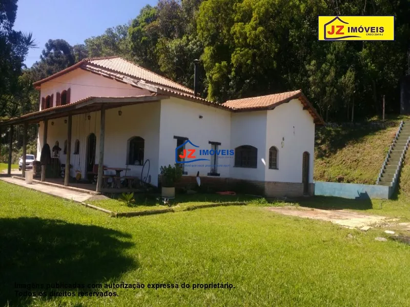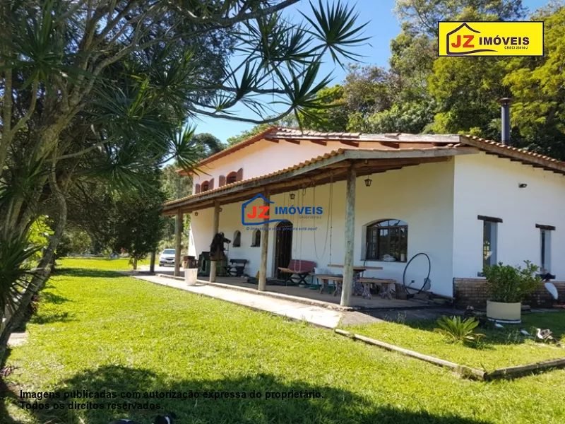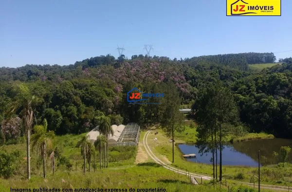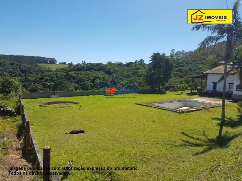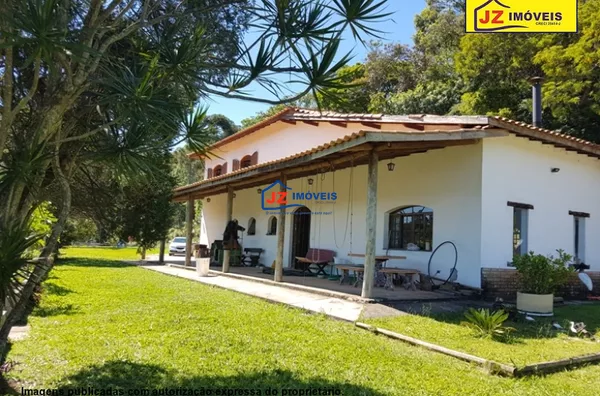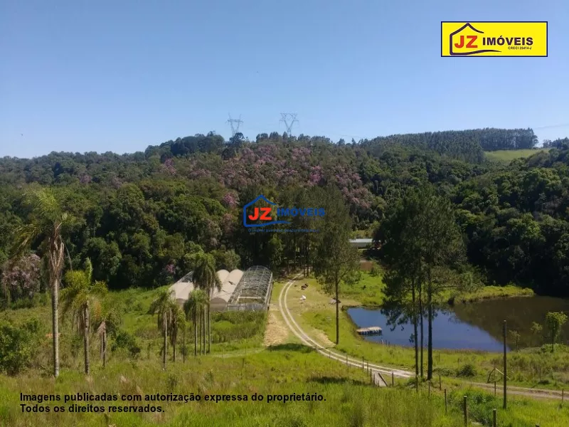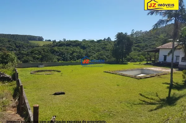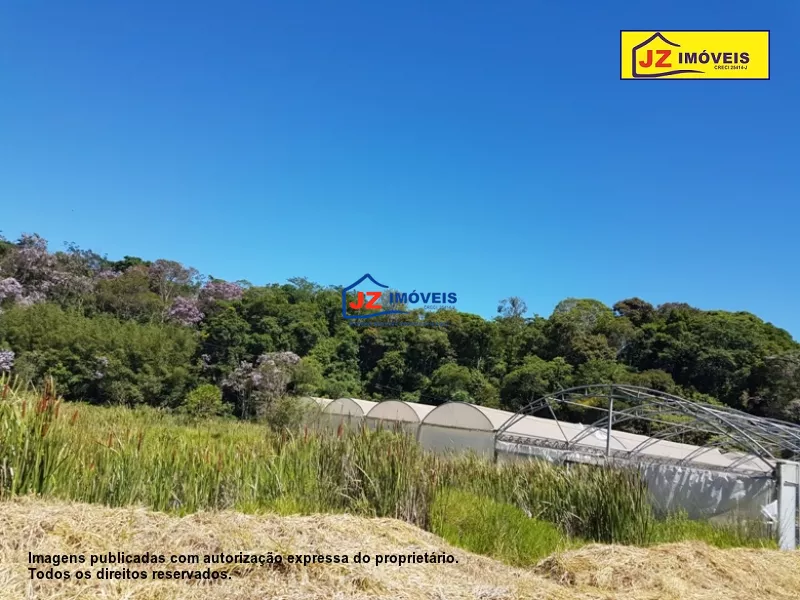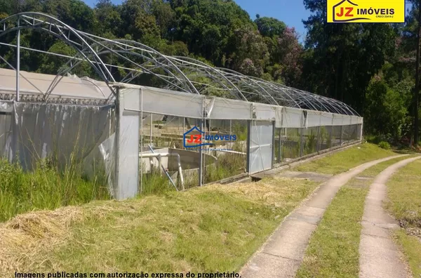 REF: 940/18 - Casa sede com 3 suítes com closet, 2 salas, escritório, copa, cozinha, despensa, lavanderia com banheiro, garagem para 3 carros, salão de festa. Casa de caseiro com 2 dormitórios, sala, cozinha e banheiro. Galpão 70 m², 1200 m² de estufa, lago. Local ideal para pousada, clinica, condomínio ou lazer. Área total de 15 hectares. Com escritura e registro.