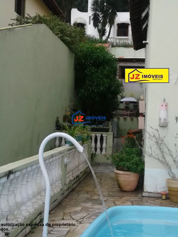 Ref: 984/35 - Sobrado em terreno em aclive, acesso através de escada, garagem para 02 autos, descoberta, piscina, ampla sala para 02 ambientes,piso frio, lavabo social, ampla copa e cozinha com armário suspenso, ampla pia em material sintético, cuba em aço inox, divisão com murete com tampão em granito, pavimento superior contendo 01 suite, banheiro blindex, 02 dormitórios e 01 banheiro social com box blindex, todos com piso frio,entrada lateral com acesso para edícula onde tem uma área de serviços, piso frio decorado, um espaço coberto para lazer ou sala para ginástica,