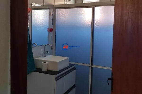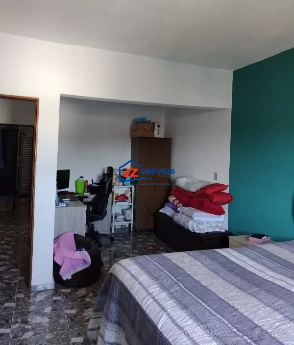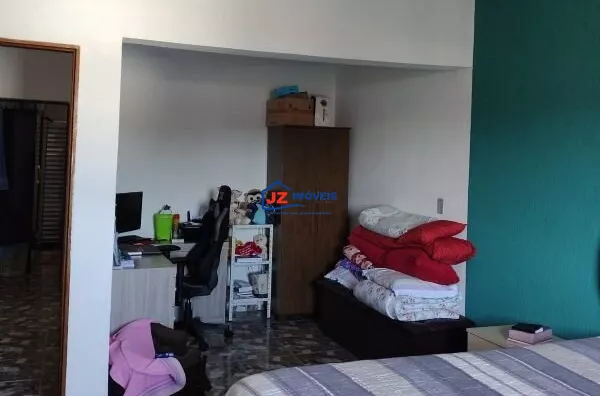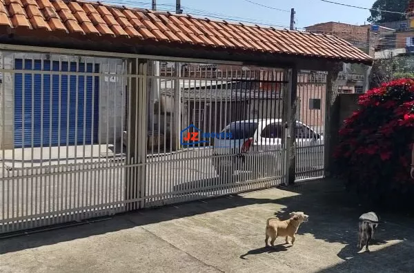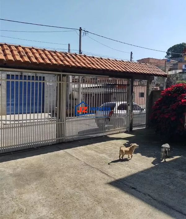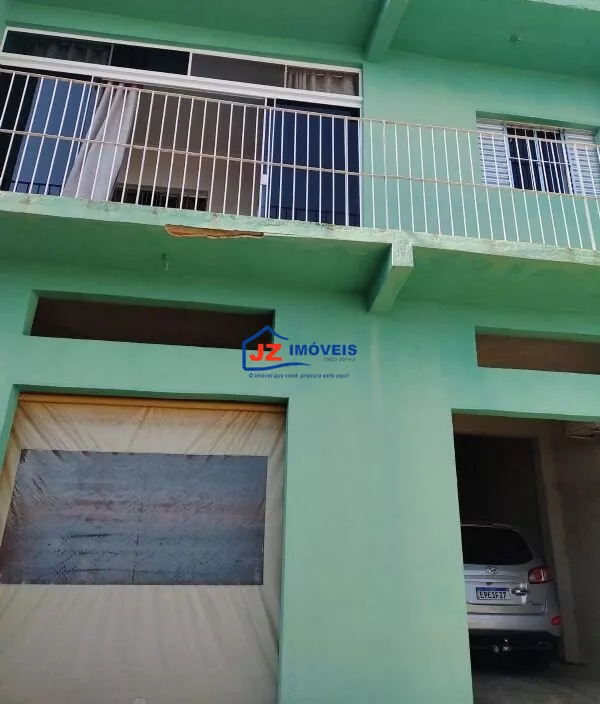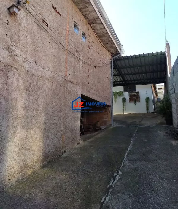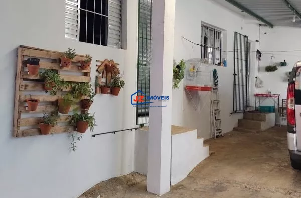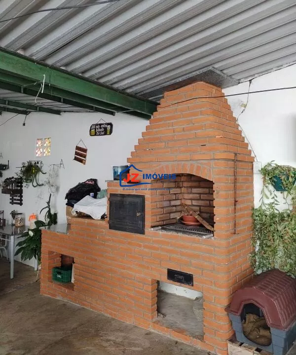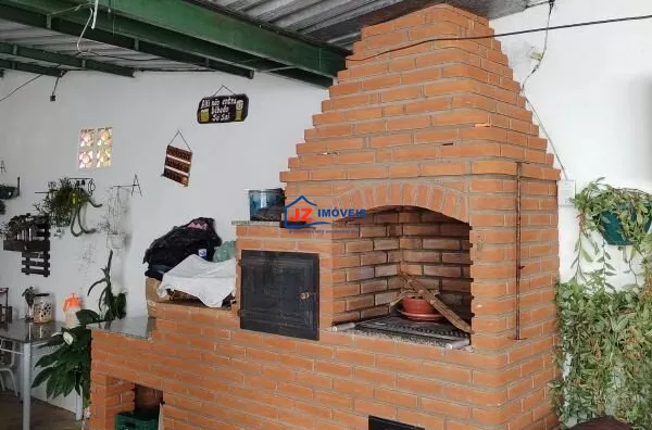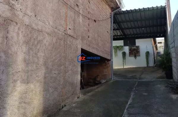 Garagem coberta para mais de 10 veículos, quintal cimentado e área com churrasqueira.