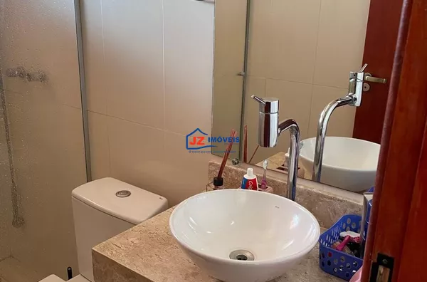 Condomínio com portaria 24 horas e infraestrutura de lazer, incluindo piscinas com Toboágua, quadra de tênis e salão de festas.
